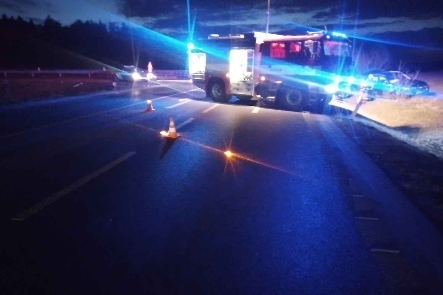 V neděli 22.3.2026 ve večerních hodinách vyjížděla jednotka Žlutice k dopravní nehodě dvou automobilů na křižovatce "Hvězda". Po příjezdu na místo události jednotka zabezpečila místo nehody, provedla protipožární opatření a řídila dopravu. Na místě již byla ZZS KVK a všichni cestující byli mimo vozidla.